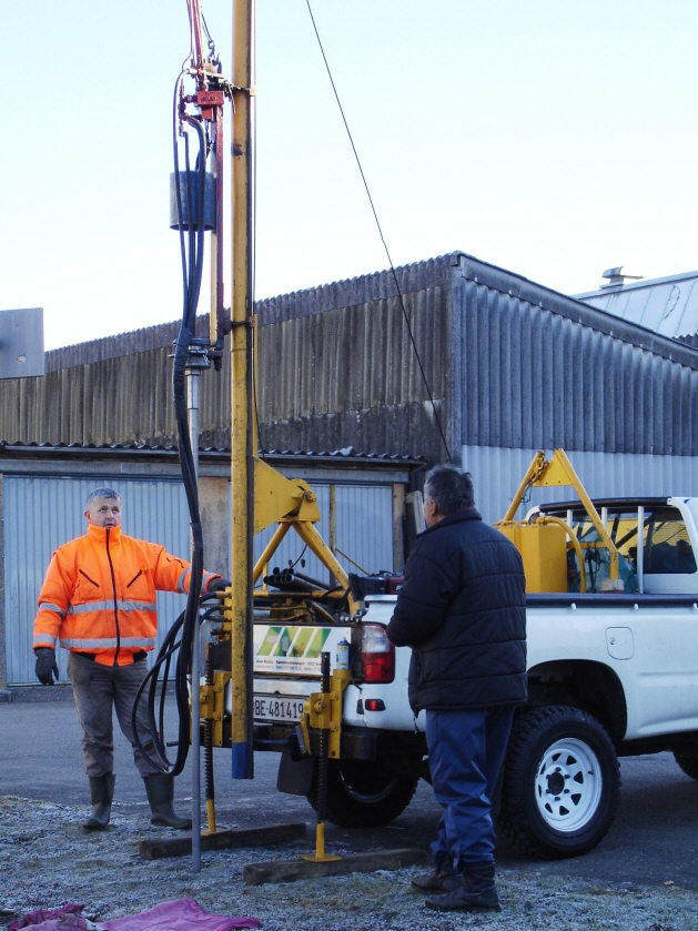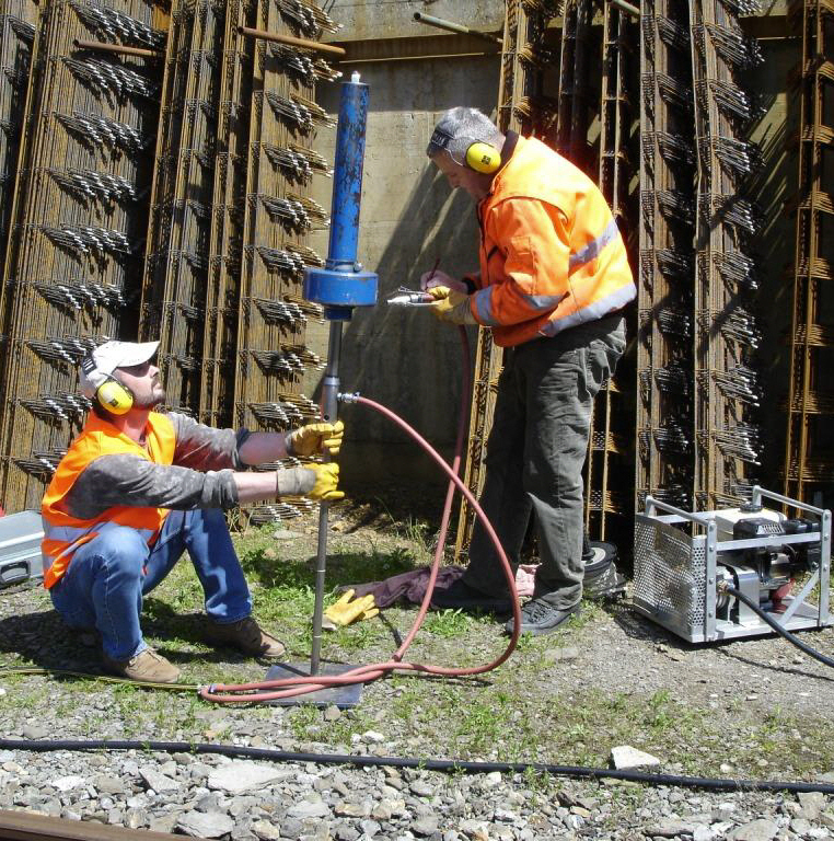 - mittelschwere oder VAWE-Sonde (siehe nachfolgende Fotos; Bärgewicht 30 kg, Fallhöhe 20 cm, Spitzenquerschnitt 10 cm2), pneumatisch